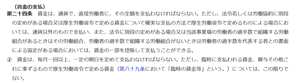 ①正しい給与支払い(賃金全額払いの原則)】