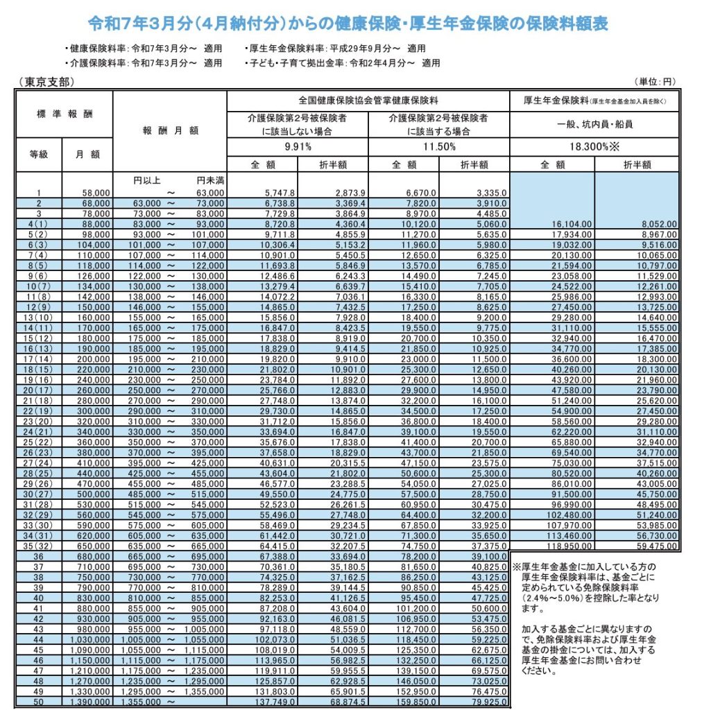 参考:令和7年度保険料額表 東京(健康保険、介護保険)