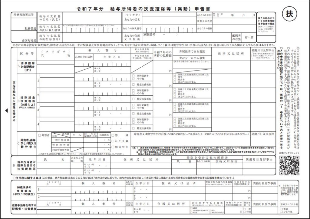 出典:国税庁 扶養控除等(異動)申告書