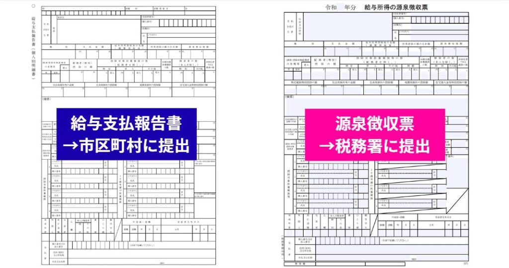 また、源泉徴収票を税務署に提出したからといって、市区町村への報告が免除されるわけではありません。両方の提出が必要になる点に注意してください。