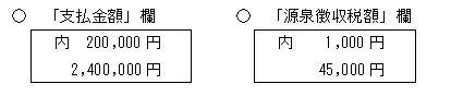 「給与所得の源泉徴収票」作成時に未払いの給与がある場合は、未払額と未徴収の税額を「支払金額」欄と「源泉徴収税額」欄に内書きします。